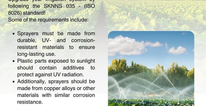Farmers, it’s time to upgrade your irrigation systems! Ensure the best performance and durability of your equipment by following the requirements outlined in SKNNS 035 – (ISO 8026) Agricultural Irrigation Equipment — Sprayers. This standard specifies essential guidelines, like using materials that resist UV radiation and corrosion. By investing in this standard, you’re safeguarding the […]