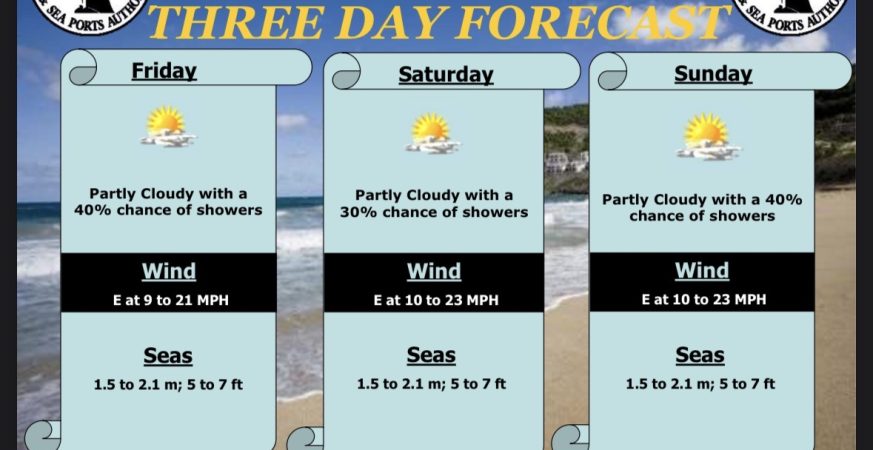Robert L. Bradshaw International Airport St. Kitts Meteorological Services St. Christopher Air & Sea Port Authorities P.O. Box 963 Basseterre St. Kitts Tel: 869 465 2749 Tele- fax: 869 465 9122 Weather Bulletin Issued: 6 am Friday 27th February 2026 Present Weather: Partly Cloudy skies with slight dust haze Winds: A gentle breeze of 12 […]