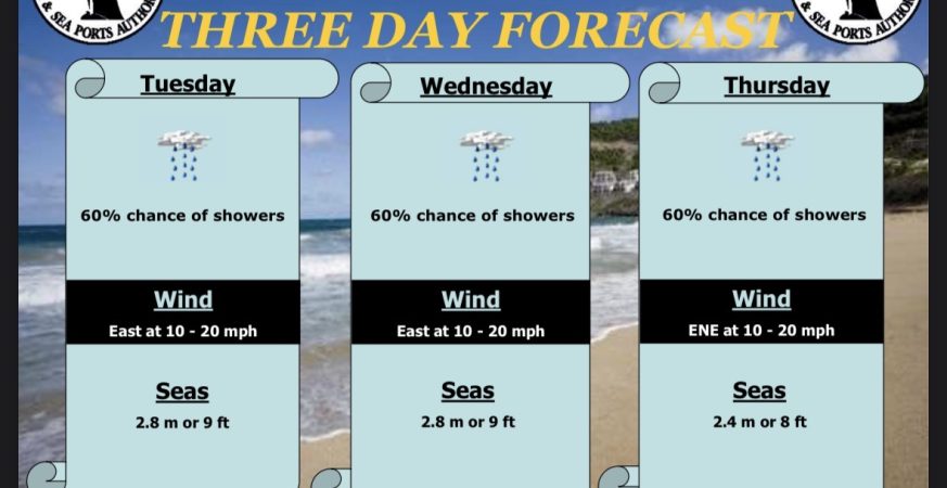 Robert L. Bradshaw International Airport St. Kitts Meteorological Services St. Christopher Air & Sea Port Authorities P.O. Box 963 Basseterre St. Kitts Tel: 869 465 2749 Tele- fax: 869 465 9122 Weather Bulletin Issued: 7 am Tuesday 3rd March 2026 Present Weather: Fair skies with slight dust haze Winds: A moderate breeze of 14 mph […]