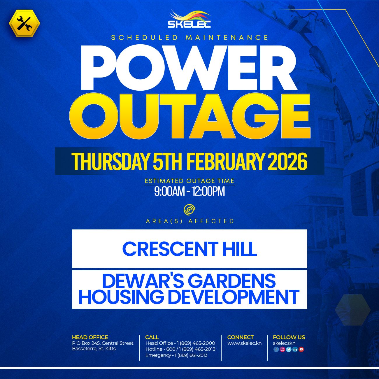 SKELEC Scheduled Maintenance February 5, 2026 – Crescent Hill and Dewar’s Gardens Housing Development