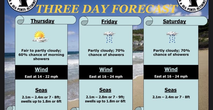 Robert L. Bradshaw International Airport St. Kitts Meteorological Services St. Christopher Air & Sea Port Authorities P.O. Box 963 Basseterre St. Kitts Tel: 869 465 2749 Tele- fax: 869 465 9122 Weather Bulletin Issued: 7 am Wednesday 25th March 2026. Present Weather: Partly Cloudy Skies Winds: A gentle breeze of 9mph from the East-Northeast Temperature: […]